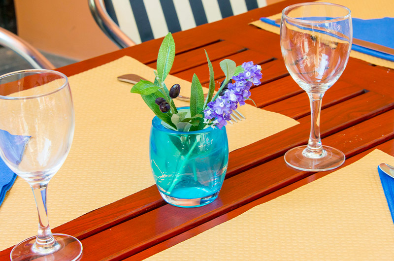 Au fil des saisons se succèdent dans les assiettes : curry d'agneau et riz blanc de l'île Maurice, Foie Gras frais, Filet de Bœuf Rossini, Magret de Canard aux oranges confites, Saint Jacques au Chorizo ou Gambas flambées au Pastis, Tartare coupé et fait minute, Gravelax de saumon frais et des desserts maison, frais et gourmands. Tous les plats sont généreux, chaleureusement servis et accompagnés d'une belle sélection de vins qui viennent sublimer votre pause gourmande. Finissez le repas suavement en dégustant un petit Rhum arrangé fait maison. Les épices du rhum vous feront voyager encore un peu pour la fin du repas. Bon appétit !